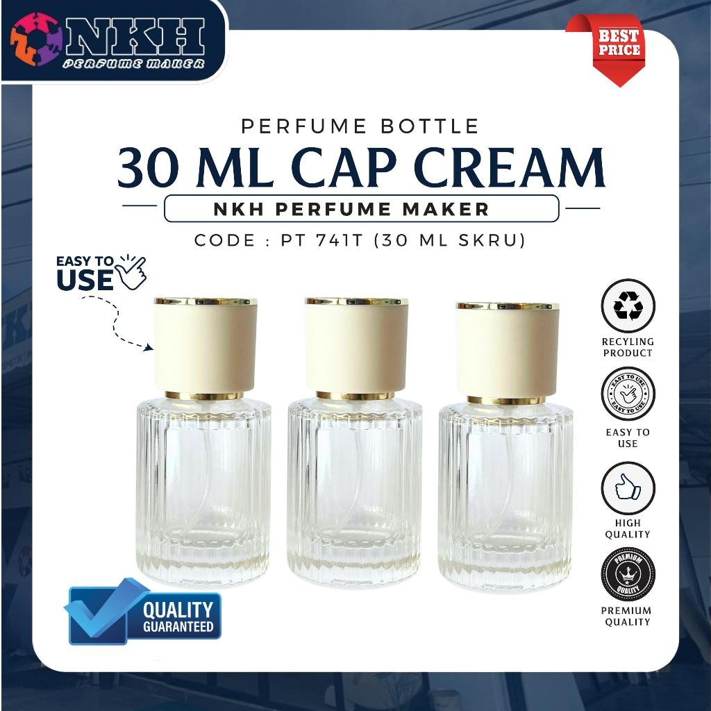 EMPTY BOTTLE FRAGRANCE 30ML CIRCLE CAP CREAM SCREW ( PT 741T )