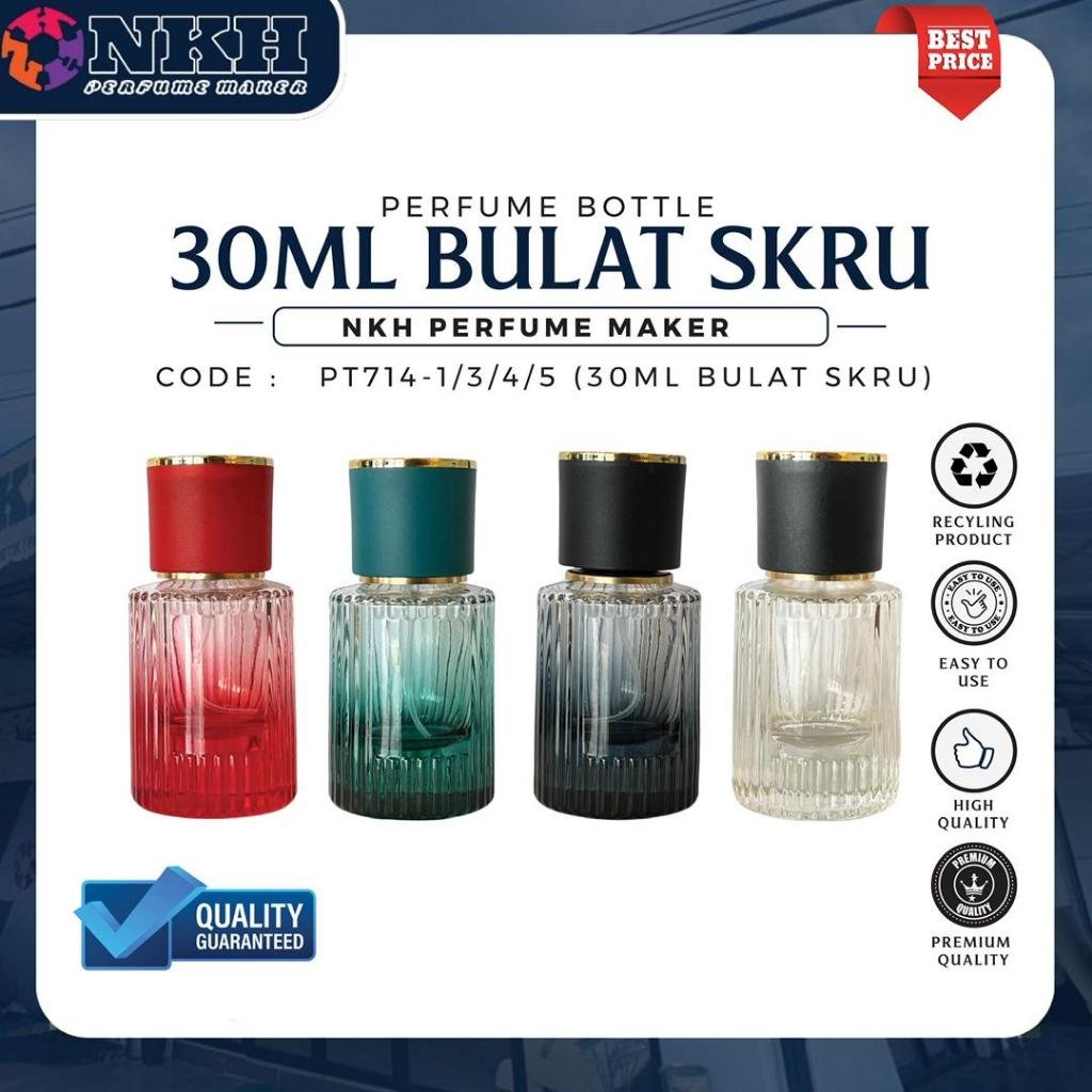 EMPTY BOTTLE FRAGRANCE 30ML RIBBED ROUND SCREW ( PT714-1/3/4/5 )
