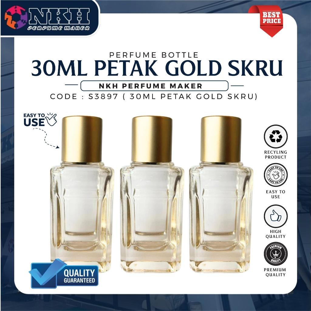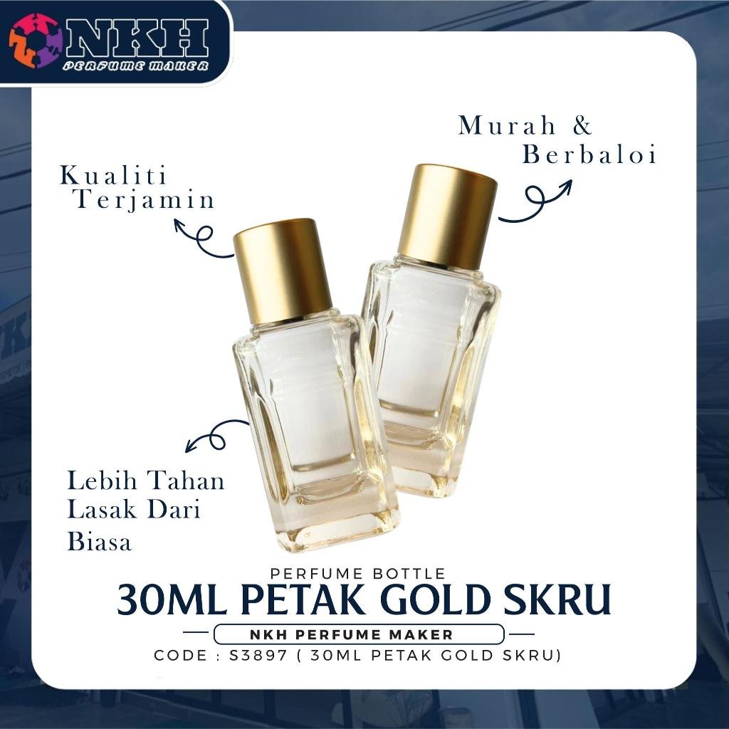 EMPTY BOTTLE FRAGRANCE 30ML SQUARE GOLD SCREW SPRAY ( S3897 )