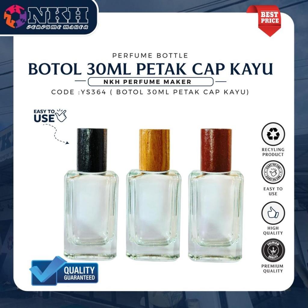 EMPTY BOTTLE FRAGRANCE 30ML SQUARE WOODEN CAP PRESS ( YS364 )